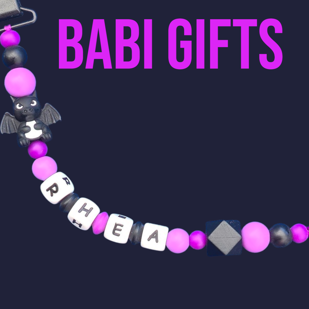 - 🐉 Black dragon focal bead on both dummy clip and teether