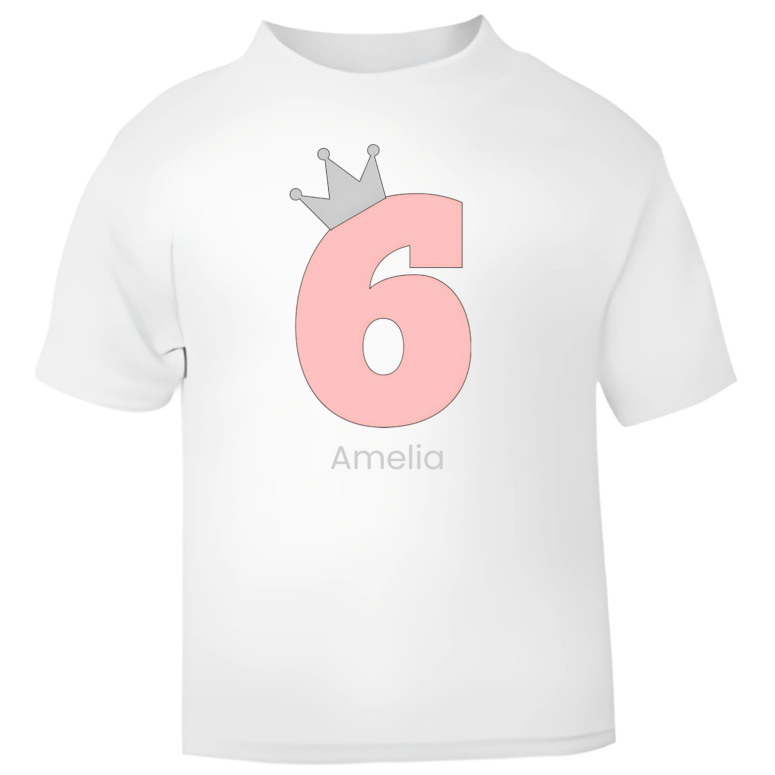 • Pale pink number (ages 1–6) with a regal silver crown